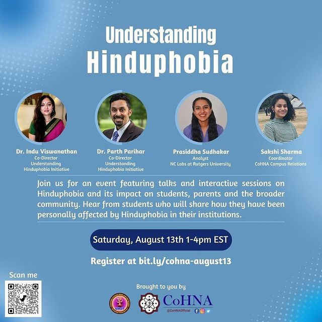 Hinduphobia" - on Saturday, August 13th at 1 PM ET / 10 AM PT / 12 Noon CT