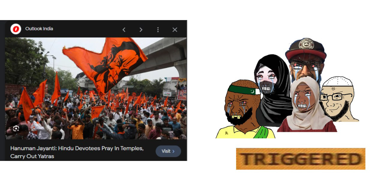 A meme posted on Hindu twitter encapsulates the average Islamist reaction to Hindu practice of their religion and flying their flags.