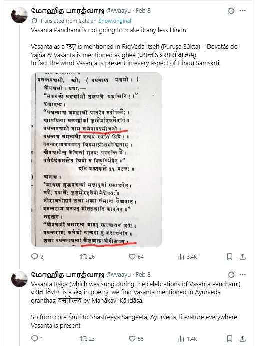 Thankfully, there are some Hindus that actually are fighting this ideological battle against the stripmining of Hinduism. @vvaayu pointed out that references to Vasant go back to the Rigveda itself.